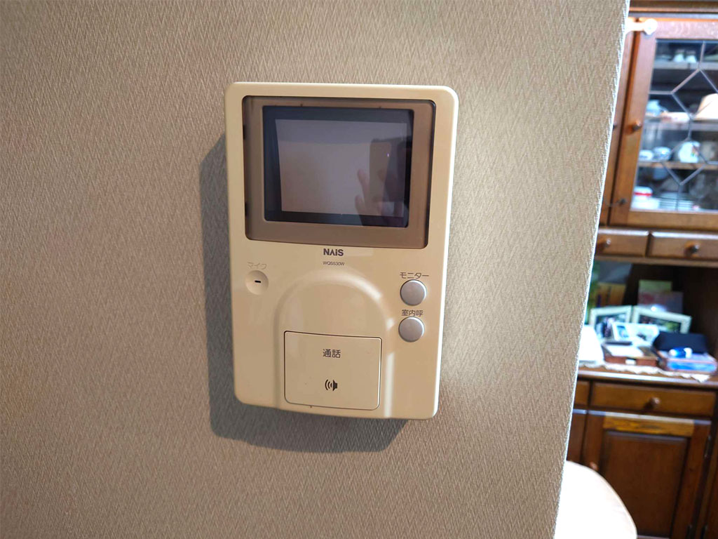 現在のカメラ付きのインターホンは、2階など離れた場所に設置するものは無線式の子機を使用する形が主流ですが、今回のようにオプションとして壁付のものを選択ことも可能です。