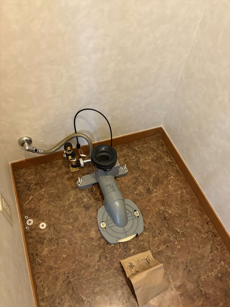 年代の古い便器は現在と排水配管の位置が異なるのため、そうした場合はリモデル便器を使用します。
