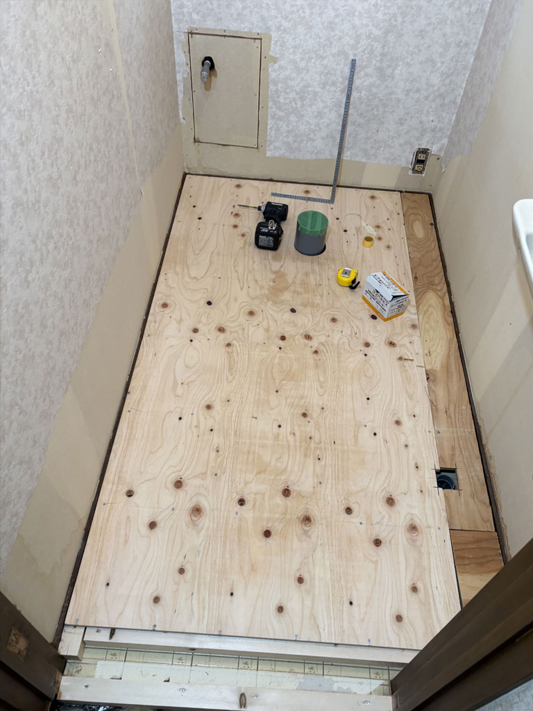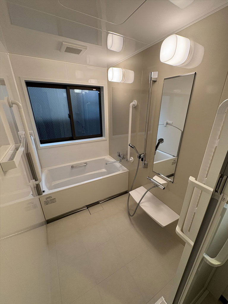 今回は全体的な段差解消が主な目的です。 浴室と洗面所は全面的な改修、トイレについては既存設備は再利用して床の高さ上げる形で改修をしています。